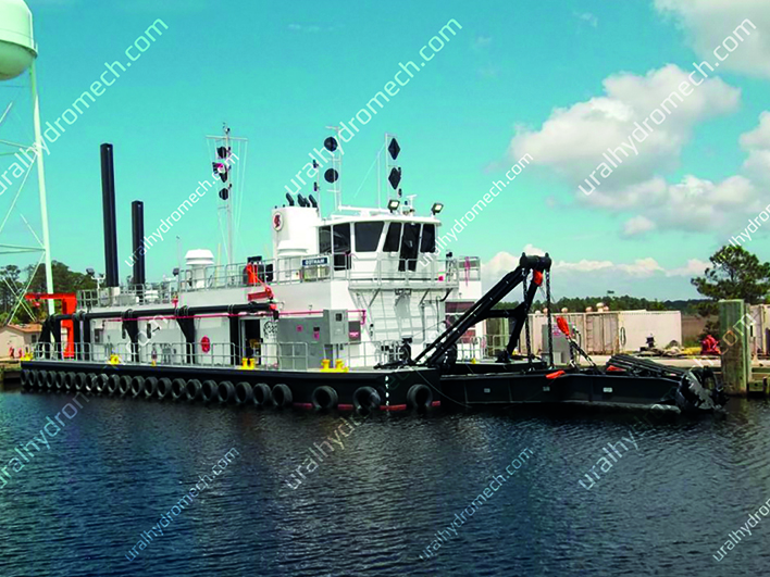 НЕПТУС 2000 ОБЩИЕ СВЕДЕНИЯ Ед.изм. 1. Категория разрабатываемых грунтов по ЕНИР Е2 I- IV 2. Производительность в перерасчете на сухой грунт м3/час 180 3. Напор м 15-80 4. Дальность транспортирования грунта по горизонтали м 1200 5. Максимальная глубина разработки с гидро рыхлителем: м 14 - с дополнительным эжектором м 30 6. Минимальная глубина разработки м 1.2 7. Диаметр напорного пульпопровода мм 478 8. Габаритные размеры в сборе: 9. Длина земснаряда без (рамы) м 16 10. Ширина земснаряда м 5.4 11. Общий вес земснаряда т 45 12. Осадка в рабочем состоянии (средняя) м 0.75 13. Высота земснаряда от горизонта воды м 4.5 14. Максимальная установленная мощность: кВт 500-1200 15. Длина межпонтонной прорези м 4 Корпус 1. Машинное отделение: съёмное Длина м 12 Ширина м 2.4 Высота м 2.5 2. Рубка управления: съёмная Длина м 1.5 Ширина м 2.4 Высота м 2.4 3. Наибольшая высота крыши над палубой: м 3.5 Главный агрегат 1. Марка грунтонасоса ГрАТ/ГрУТ/ГрА 2. Производительность по воде м3/час 2000 3. Рабочий напор на воде м 15-80 4. Диаметр патрубков: Всасывающего мм 478 Напорного мм 426 5. Дизельный двигатель: ЯМЗ, Cummins, Caterpillar, 6ЧН, 8ЧН Мощность кВт (л.с.) 320-650 (435-885) Частота вращения об/мин 2000 Вес кг 2000 Объем топливных баков м3 8 6. Способ заливки грунтонасоса вакуумный 7. Редуктор гидравлический реверс-редуктор СИСТЕМА ПАПИЛЬОНИРОВАНИЯ Лебёдки шт 4 Тяговое усилие т 2 Длина каната м 120 Скорость навивки каната на первом слое м/с 0.3 Диаметр каната мм 12 Канатоемкость м 120 Мощность эл.двигателя кВт 12 РАМОПОДЪЁМНОЕ УСТРОЙСТВО 1. Подъёмная стрела Длина м 14 Кратность полиспаста. 3 Диаметр блоков. мм 315 Количество блоков: шт 3 2. Рамоподъемная лебёдка Тяговое усилие лебёдки подъёма всасывающего пульпопровода н/м 50 Число ниток полиспаста для подъёма разрыхлителя 6 Скорость подъёма разрыхлителя м/с 0.3 Диаметр каната мм 18 Мощность эл.двигателя кВт 18 ВСПОМОГАТЕЛЬНЫЕ РАБОЧИЕ МЕХАНИЗМЫ И УСТРОЙСТВА Отжимной насос Тип К 200-150-250 Производительность м3/час 315 Рабочий напор м 20 Мощность кВт 30 Число оборотов об/мин 2900 Насос эжекторного гидравлического рыхлителя Тип Д500-63 Производительность м3/час 500 Рабочий напор м3/час 63 Мощность кВт 142 Число оборотов об/мин 1500 ЭЛЕКТРИЧЕСКОЕ ОСНАЩЕНИЕ Дизель-генераторная установка Основная мощность кВт / кВа 315 / 394 Резервная мощность кВт / кВа 346 / 471 Вырабатываемый ток 3-фазный / 400 В / 50 Гц ДОПОЛНИТЕЛЬНОЕ ОСНАЩЕНИЕ И ОБОРУДОВАНИЕ Система отопления и кондиционирования Консольный кран, г/п 1-3т Свайный аппарат Фрезерный рыхлитель, диамтером фрезы 0,8м-1,5м Гидросистема рабочего оборудования изолированная или одноконтурная Система видеонаблюдения на 5 камер аналогового типа или IP Кресло-пульт с оперативными органами управления Система контроля производительности Система аварийного мониторинга - с раздельными приборами - объединенная на 1 мониторе промышленного компьютера GSM-система удаленного мониторинга производительности Усиленный корпус из судовой стали Антикоррозионное покрытие корпуса - эмаль - эпоксидно-полиуретановое - антиобрастающее