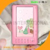 7 inch New Color display TFT ebook reader 1. Our factory was recognized as Hi-tech Enterprise in 2005, and being top 20 in Shenzhen Export Enterprise in 2006. 2.Our monthly capacity is 50,000 units. 3.All of our products carry ROHS, CE, FC marks. - CPU: Rockchip 2729 500MHZ - Display: 7"c-paper LCD screen resolution:800*480 - RAM: 256MB - Extension slot: TF card(can be up to 16G) - Music: MP3,WMA,OGG,FLAC,WAV,AAC,APE - Memory: 2-8G for optional - Image: JPG,BMP - Text: TXT\EPUB\FB2\HTML\PDB\PDF formats - Vedio: MKV\AVI\RM\RMVB\VOB\DAT\MP4\FLV\3GP .WMV with 720P - FM Radio - Language: 18 kinds of multiple language - Battery: Li-Polymer 2000mAh - USB cable - Earphone - User's Manual - Flannelet Case (Optional) - Power adapter (Optional) - Products size:206*133*12mm - Net weight: 320g - Giftbox size: 276*240*64mm - Gross weight: 0.65kg - Carton size: 345*290*505mm - G.W. per ctn: 6.75kg - CBM per ctn: 0.05 - Quantity per ctn: 10pcs/ctn - 20"container: 6000pcs - 40"container: 13000pcs - Payment 1) Sample: 100% T/T or Westernunion 2) Mass Production: 30% deposit by T/T, balance should be paid before shipment - Delivery 1) Sample: 3 days 2) 1000-5000 Pcs==>7-15 Days; - Guarantee 1) One year 2) Customer bear all the freight and duty charge to factory, and the factory take the responsibility of return freight charge.