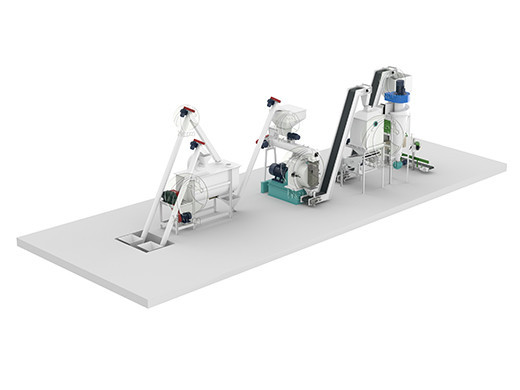 The main equipment of a complete 1-2ton/h feed pellet production line is a hammer mill crusher, a feed pellet mill, a feed mixer, a counter-flow feed pellet cooler, a crumbler machine, a pulse dust collector, a vibrating screen, a bagging machine, etc. This complete feed pellet plant can accomplish the process of raw material mixing, transmission, feeding, and pelletizing. After the raw materials become feed pellets, the following equipment can cool them down and pack them into bags.