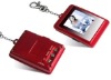 1.5 inch digital photo keychain(GWDPF1.5-1) Specification: 1.Display: 1.5"CSTN color LCD display,128 x 128RGB 2.Internal Memory: 16MB built-in memory 3.Storage Capacity: Up to 107 pictures 4.Power Source: built-in rechargeable Lithium battery 5.Battery Life: 4-5 hours continuous operation 6.Auto Power off: 180 seconds 7.With USB Interface for quick upload of photos 8.File Format: JPG/BMP/PNG/GIF 9.Other Functions: Slide Show Function 10.Additional Features: Digital clock,Calendar