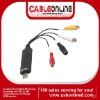 Video Adapter Products intro: The EasyCAP USB 2.0 Video Adapter with Audio, it can capture High-quality video and audio file direct by USB 2.0 interface without sound card. However, the installation is very simple and the external power is unnecessary. Solution for laptop, we have enclosed the professional video editing software Ulead Video Studio 8.0 SE DVD then provide best editing function for you. Video Studio is video-editing software that makes editing your movies as fun as shooting them. The new Video Studio Movie Wizard helps novice users finish stylish movies in only three steps. Share finished projects on DVD, tape, the Web, and mobile devices. High-speed rendering and real-time performance mean less time waiting and more time creating. By the way, you can create many special effect and clip video files...etc. Detailed: Design Solutions: Video Decode: Philips SAA7113 USB 2.0 Interface: Syntek STK1160 Key Features: Include Professional and easy to learn & used video editor software: Ulead Video Studio 8.0 SE DVD Popular USB 2.0 interface and not need other power Capture Video & Audio though USB 2.0 interface Support Brightness, Contrast, Hue, and Saturation control The dimension suitable that is easy to carry Could capture audio without the sound card High plug & play Support For All Formats: record in DVD+/-R/RW, DVD+/-VR, and DVD-Video. Applying to internet conference / net meeting Specification: Complies With Universal Serial Bus Specification Rev. 2.0. Supports NTSC, PAL, Video format Video input: One RCA composite, One S-Video. Audio input : Stereo audio (RCA)mm Dimension (L)88mm x (W)28mm x (H)18mm USB bus power Supports high quality video resolution NTSC: 720 x 480 @ 30fps PAL: 720 x 576 @ 25fps System Requirements: USB: Compliant USB 2.0 free port OS: Windows 2000, XP windows 2000/XP/Vista 32,windows 7 for bussines CPU: Pentium III 800 above HD: 600 MB of available hard drive space for program installation File Format Support,4 GB+ hard drive space for video capture and editing Memory: 256MB of RAM Display: Windows-compatible display with at least 1024x768 Sound card: compatible Windows-sound card Included in Package: EasyCAP USB 2.0 Video Adapter with Audio USB Cable Quick Installation Guide CD-ROM (included driver and the professional video editor software)