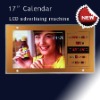 15 inchlcd ad player with calendar Technique Parameter for LCD Panel Panel Size: 15 inch real color LCD screen Aspect Ratio: 4:3 Active Area: 304.1mm(H) x 228.1mm(V) Max. Resolution: 1024 x 768 Dot Pitch: 0.264mm(H) x 0.264mm(W) Number of Color: 16.7M Brightness: 650cd/m2 Contrast Ratio: 700:1 Responsive Time: 8ms Panel Life: above 50000 hours Product Features and Technique Parameter: Outer shell is made by extra quality metal material, which is painted by powder-spray craftwork. Metal-silver color, With a protection layer of ultra-thin, high light-penetrating toughened glass on the surface of the LCD screen. Brands of LCD screen for Samsung, LG, Chi Mei, AU, Toshiba, SVA etc, A Class 335 standard, full new and factory original packing screen. Build-in CF and SD card reader, support CF/SD/MS/MMS/XD card/USB drive, using CF and SD card as the source of programming, play high reliability. Safely locking system function to avoid take way flash memory card and advertising playing content, also can be protected by input password. With USB update feature; support functions between the card and card copying files (such as CF card to SD card, or SD to CF card etc.); support U-copy, conveniently and quickly updating target content, more details please visit Product Function Parameter: Support memory card capability: 32MB-16GB, such as CF card, SD card and U-disk etc. Support file playing format: MP4(AVI: DIVX/XVID), MPG2(DVD:VOB/MPG2), MPEG1 (VCD: DAT/MPG1), MP3, JPG etc. Support video playing format: AUTO/NTSC/PAL is optional. Audio output: stereo L/R, 5W*2, 8Ω Power supply: AC 110V – 240V,50/60HZ. Packing Information: Packing list: one unit 15 inch lcd ad player, 2pcs keys, 1pcs English manual, 1pcs remote controller. Packing size: 160cm*26cm*56cm Net weight: about 6kg Gross weight: about 7kg