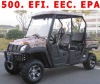 UTV500CC-4 SEATER CFMOTOR C.V.T Automatic clutch R/N/L/H. Water Cooling,Shaft drive. 4X4 and 4X2 swithchable, 4-wheel independent suspension. Auto Dump Bed by electromotion. Plastic trailer, Plastic seat box, Plastic bottom plate. DIMENSIONS 1.product dimensions (mm): 3370×1280×1880mm 2.Wheelbase (mm): 2452mm3.Wheel span (mm): a) Fr:1225mmb) Re: 1215mm 4.Ground clearance(mm): 220MM ENGINE 5.Type: single cylinder,4-Stroke,Liquid-cooled 6.Bore*Stroke(mm): 87.5*82mm7.Displacement: 493ml/24HP 8.Compression ratio:10.2:1 9.Starting: electric10.Transmission:automatic clutch(R/N/H/L) 11.Drive type:shaft, 2WD/4WD/Differential Normal drive: Rear wheel driveCAPACITIES 12.Fuel tank: 22.0L 14.Battery: 12V 15.Max speed: 75-84km/h