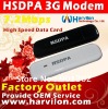 3G HSDPA Modemis a complete 3G enabled wireless USB data modem which offers high-speed wireless connectivity for Windows laptops and desktop computers. USB HSDPA Modemis easy to roam globally on tri-band UMTS and quad-band GSM/GPRS/ EDGE networks. Download up to 7.2 Mbps on HSUPA&UMTS capable networks, and upload up to 384Kbps. The added advantages with this product are the 8G MicroSD memory expansion capability. The auto install driver which requires no CD. Detailed Product Description 1.Worldwide roaming and global connectivity with one modem 2.Chip set Qualcomm MSM 6280 3.Supports HSDPA/UMTS on 2100MHZ GSM/GPRS/EDGE on 900/1800/1900MHz 4.Donlink up to 7.2Mbps on HSDPA and UMTS capable networks Uplink up to 384Kbps 5.EDGE data up to 236.8Kbps 6.Built-in Micro SD memory up to 8G 7.Automatically install driver,no CD required 8.Supports Data/SMS functions 9.Supports Microsoft Windows 2000/XP/Vista/7 Specifications: 1.USB 2.0 interface 2.High performance internal antenna 3.SIM card slot and built-in micro SD memory expansion slot 4.3 LED indicator 5.Dimensions:80*26*10mm 6.Weight:26g
