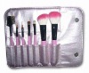 7 pieces Makeup Brush Set in Pink Color 1) pink series,other color available 2) pink pouch to match 3) OEM orders welcome It include: powder brush, angled blusher brush, concealer brush,eyeshadow brush, lip brush, slant liner brush, eye groomer.