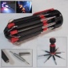 8 in 1 multi screwdriver torch/screwdriver flashlight 1. Magnetic CRV steel heads 2. 8 screwdrivers sets 3. A torch attached for easy screwing in dark 4. Insulation function 5. Materials: Stainless steel and ABS