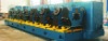 Composition It ismade up of melting shaft furnace, holding furnace, casting machine,automatic shearer, straightening machine, induction heater, rolling mill, lubrication system, rod quenching device, rod coiler and electric control system. Features Specially for producing aluminium or aluminium alloy rod of diameter 9.5mm for electrical wire. The line is competitive with the relative international products.In-line filter & degassing device to provide maximum quality liquid metal to the casting machine.The continuous casting machine has been awardedthe patent right(Patent NO. is ZL200720079542.8). Crystallizing wheel is in type of "H", on every side of which there is an adjustabe nozzle sparying water to ensure the crystalof the cast bar close andequal. The pneumatic system is used for tightening steelbelt,easy for adjusting.Induction heater meets the temperature requiement of the cast bar for rolling process. With the function of temp erature rising, it can do heating and adjusting automatically.The continuous rolling machine has a function ofautomatic feeding and rods stacking stop. With an unique rolling method conbining 2-high rolling stand with3-high rolling stand, the copper rod is provided with a good mechanical properties.The main transmission system is in type of DC motor full-digital speed adjusting. By adopting PLC and man-machine interface, it can control the host and the assisting parts in type of completeline interaction. Also it can check and display the running parametersof machines aswell as indicate thebreakdown.Technical Data UL+Z-1500/9.5+255/15 Outlet rod dia(mm) Φ9.5 Φ12 Φ15 Crystallizing wheel dia.(mm) Φ1500 Φ1800 Casting bar section(mm2) 2380 Production capacity(t/h) 2-4.2 Finished rolling speed(m/min) 6.15 No. of rolling stand 15 Coils’ weight(t) 2-3 Main motor 250kw 750r/min Roller dia.(mm) Φ255