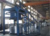 Aluminum Rod Continuous Casting and Rolling Line 1. Name of Machine: Aluminum(aluminum alloy) Rod Continuous Casting and Rolling production line 2. Process Flow: Feeding raw materials, melting and refining - holding furnace - filter and degassing device - flum - casting ladle - continuous casting - forward hauling - casting ingot treatment unit(sheare, conveyer, straightening) - induction heater - rolling mill - continuous rolling(Al rod reguel bag and leading pipe, rod quenching device) - backward hauling - dual taking - up basket(connectiontrolley) - aluminum rod coiler - final products. 3. Technical parameter: Ingot sectional area: 2330mm Dia.of rod: 9.5mm Capacity: 6T/h 4.Main features: Convenient for installing and disassembling, high production efficiency, low energy consumption, and good quality of final products.