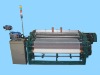 AIR JET GAUZE MECHINERY---PQ08A& PQ08BTECHNICAL SPECIFICATIONOperating mode: main nozzle one-pass air-jet weft insertion; Reed width: 1400mm Shedding device: rocker arm shedding, tappet shedding; Speed of crankshaft: 300-500 r/min Control: left-hand operation Weft selection: one color Flange for weaver's beam: 550-600 mm Drive: electromagnetic brake (24V) Motor speed: 960 r/min (0.8KW V-belt drive)10. Dropper bar number: 4 contact bars.11. Pick density: 4-30 picks/cm12. Licker-in roller diameter: 127 mm13. Cloth roller diameter: 95/74 mmMACHINE FRAMEMachine frame comprises mainly wall plates on the left and right sides, two cross beams in the front and rear that link the plates, middle cross beam, front beam, and small supporting parts which hold the parts together into a machine body. The frame is placed on a wood block and fixed to the ground with anchor bolts. It adopts electromagnetic clutch and brake attractive transmission.TRANSMISSIONThe releasing and braking processes are both controlled by a microcomputer.WEFT INSERTIONWeft insertion mechanism uses an independent air nozzle. The process is initiated by a crank shaft. It drives the air pump by pressing a piston, letting compressed air burst out of the gate and blow the weft.CUTTERShedding cutter and blades are mounted on the weft insertion seat as an independent cutter device to cut the weft.BEATING-UPThe beating-up system has a special crank shaft which is linked to the machine base. As this shaft moves back and forth, as well as the steel buckle on the machine base, the weft inserting process is smoothly carried out.LET-OFF Interior electrical weft feeding is controlled by sensors and computer program, with the assistance of an auto tension adjustment device. Such a mechanism ensures an even feeding volume and a constant weft tension. (FOR PQ08B)TAKING-UPThe take up structure adopts worm wheel, and non-stop mechanism. The take up of cloth is conducted by the licker-in roller driven by change gears. (Electrical take up structure is added for PQ08B.)CLOTH-ROLLINGTorsion spring pressing cloth-rolling mechanism makes the removing of cloth as easy as just pressing the spring.STOPThe cutting of warp and weft is conducted by an electrical device which can stop automatically once the cutting is done. This device has a red light indicates the stop of warp and a green one indicates the stop of weft.