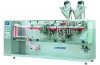 TYPE DXD-180/DXD-180B Brief introduction of the product horizontal bag filler The machine absorbed the Western Europes advanced technology, used the making flow of bag-making at first and packing then, chose the filling way of the servo motor material-discharging controlled volume pump, piston cylinder and graduate. Its measurement is sealing aluminum-film bag, the packed products appearance is artistic, has high strength and low damaged rate. The machine conducts bi-bags little scale controlled volume packing, may largely extend the packing speed, double increase. The equipment is widely used in the bag-packing of powder, liquid and the particle for the industry such as foodstuff, medicine, pesticide and daily chemical industry. 1500mm The max diameter of packing film roller is 500mm 2-3 Bag-making forming shelf 4 Photo electricity detecting system 5 Bottom sealing device 6-7 Vertical sealing and cutter 8 Bag-drawing device 9 Bag-opening device 10-11 The first and second filling station 12 top sealing device Bag-packing ways DXD-180()DXD-180(single bag) DXD-180B()DXD-180B(bi-bag) Three-side sealing Four-side sealing Bags sizes Max 180*225 Min 85*100 Max packing volume 400 / Production speed (bags/minute) 40-80bags/min Air-consuming amount 0.7m3/mm Film-roll diameter 400mm