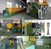 Wire drawing machine The drawing of the welding wire includes rough wire drawing and fine wire drawing.Rough wire drawing process is to draw the 5.5 welding wire material processed through the wire rod pre-treatment into φ2.45 wire. The 560-series wire drawing machine is used; Fine wire drawing is to draw the φ2.45 wire to various types of welding wire(φ1.6,φ1.2,φ1.0,φ0.9,φ0.8). The 400-series wire drawing machine is used. Currently the commonly used wire drawing machines in the market are pulley wire-drawing machines and straight-line drawing machines. Straight-line drawing machines include horizontal straight-line drawing machines and vertical straight-line drawing machine. Horizontal straight-lineRough drawing machine560/6 This wire drawing machines adopt PLC data processing and the inverter applies 485 communication, which makes the host of wire drawing bench respond quickly and ensures the wire drawing steady in high speed. Meanwhile , both realize skips of any capstan in the process of wire feed, any capstan can be operated in combination. The appliance of touch screen as the operating panel of drawing parameters input and operation data display can monitor the drawing parameters and operation data of the equipment instantly. The cascading design matched with the speed ensures the stability of the operation . The process has functions of automatic computing of the compression ratio, weight automatically stop, wire broken prevention, security protection, operation and maintenance helps. The preparation lines can be operated simultaneously to start and stop. The operating buttons, the foot switch and the separated operation panel is equipped at each block. The operation is simple and convenient. The capstans are coated with tungsten carbide, the surface is brightly finished, which is rigid and wear without damaging the surface of the welding wires. The water cooling system can cool the capstan, spindles and bearings simultaneously. This raises the life spans of the bearings, but also ensures the cooling effect when the water is cut-off in short time. The whole machine realizes the advanced intelligent control with the leading level in industries and is applied to drawing various types of wires. Compared to traditional vertical wire drawing machines ,the horizontal straight-in wire drawing machines manufactured by our company, apart from the characteristics mentioned above, also ensure the consistency of the bending of the of the wires in the process of wire drawing and realize the minimum warping distance of the coiling out. Furthermore, the horizontal straight-in wire drawing machines are easy to maintain and operate; this kind of wire drawing benches currently has two types:560 coarse wire drawing and 400 fine wire drawing, both are well received with high appraisal among customers.Technical parameters of drawing unit NumberWZ560WZ400Diameter of Capstan(mm)560400Maximum Strength of Inlet Wire(mpa) 800-900 1100Drawing Time6 92 11Average Compression Ratio25%20.5%Maximum Diameter of Inlet Wire(mm)6.53.2Minimum Diameter of Finished Product(mm)2.30.6Highest Drawing Speed(m/s) 12 15Drawing Power(KW)One block22 3011 15Driving SystemDouble-stage beltDouble-stage beltApplicationRough drawingFine drawingDie BoxDie boxes are cooled directly by water, rational installation, adjustable from up to down and left to right, provided with wire pressing device to decrease the vibration of wire and avoid pearl-like wire(rotating die box and power holder can be used).Tuning DeviceThe rolls of tuning device are coated with tungsten carbide or adopts the material of Cr12quenching. Which is wear resistant. Pneumatic anti-tension tuning is used, the tension is constant.Paying Off MannerAutomatic damping wire paying offTaking Up MannerWire taking up with constant tension controlled by inverterSafety and EnviromentAdopts full closed protection system, good safety.Suitable Drawing MaterialsVarious metal wire, for example electrode, welding wire(gas shield welding wire, submerged arc welding wire, flux-cored wire etc);steel wire (medium and low carbon steel wire, stainless steel wire etc); wire and cable(copper wire, sluminium wire etc)etc.
