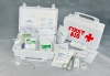 the first aid kit Contens NameSpecificationUnitQuantity1Non-Adherent steril pad10x10cm , 2pcs/packpack22Adhesive plaster assortedpc503Gauze swab3"x3"/8plys ,2pcs/packpack24Eye pad5.5x7cmpc25Emergency blanket210x160cm , gold /sliverpc16Instant Ice pack100 gpack17cotton wool25 g/packpack18Bandage scissors14.5cmlpc19Safety pinspc410First aid tape2.5cm x 4.5mroll111Disposable glovesL sizepc412Triangular bandage36"x36"x51" non woven fabricpc214First aid dressing8x10cmroll115First aid dressing10x12roll116Elastic bandage8cm x 4mroll117Elastic bandage6cm x 4mroll119Plastic tweezers11.5cmLpc120Alcohol pad65x30mmpc619Soap wipes12x22cmpc420Cleansing wipes12x22cmpc419Latex tourniquet1"x18"roll1