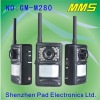 Main functions: *With camera & PIR itself *Can send MMS to your mobile phone. *Can Send picture to your E-mail. *Can match wireless detectors/sensors with mainframe by learning code. 1. IR thermo image monitoring and detection for moving objects, the double detection technology can eliminate the false alarm caused by environmental reasons. 2. It has real-time mobile AV alarm and e-mail video image back-up receiving model. 3. You can monitor the site by mobile phone at any time. 4. You can use mobile to listen the voice at the remote site. 5. Alarms will activate the pre-recorded voice messages and inform the users immediately. 6. Easy operate with a wireless remote control device by simple mobile instructions. 7. You can set if the siren and beacon device to be activated when alarm happen. 8. Under emergency situation EMSD key can silently inform any designated users. 9. With build-in back up battery, device can be still operating during power failure. 10. With IR night vision camera, it provides full time 24 hours day and night monitoring function. GSM frequency:850/900/1800/1900MHz SpecificationPIC Format JPEG Resolution 320X240 /480 X320 pixels Effective Range < 20 meters Remote Control Distance < 30 meters Plug in power: DC6V Input: AC110V 220V, 50hz or60hz Backup Battery < 72 hrs (depends on battery capacity) Working Temperature 0-50ºC (32-122ºF) Relative Humidity 10-90%, non-condense Camera View Angle Horizontal 60º / Vertical 60º