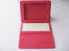 with folden and stand design Materials is PU, optional by customer Mini keyboard built in USB calbe connect keyboard to Apple Ipad With original chipset to support same function Color is optional for black and pink With PVC box package