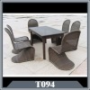 Rattan furniture:T094 1) material:PE rattan+aluminum frame 2) UV rasistance and water proof 3) various color are available Product detail Chair size:500*700*980 mm Table size:1400*750*720 mm 6(chair)+1(table)=7pcs/set Payment terms 30% deposit by T/T in advance remain 70% by T/T after receiveing our B/L copy. Delivery time 25 30 days according to the time when you place order, the qty and which items you ordered Specialty1professional design fshion and tast2hand made and fine workmanship3competitive price and good quality4profession OEM manufacturer can according to pattern design products5professional products oudtdoor rattan furniture,service first6ong-term cooperation with you is our aim