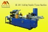 HX-340 Folding Napkin Tissue Machine / Servette Tissue Machine / Napkin Paper Machine ONE. Equipment Function and Characters 1.This machine is to print, emboss and automatically fold the rolled paper which is cut well into square or rectangular Napkin Paper. Can add 1-4 colors related water ink printing system for printing diversified fine pattern, brand, with characters of clear and bright printing, exact overprint, high speed and stable running, is preferred equipment for processing good quality napkin paper. 2.Design according to Europe CE standard, electric part has CE or UL certification,equipped with emergency stop safety device. 3.Most accessories is processed through good processing by numerical control machine tool, main mechanical parts adopt CNC processing; main parts which is bought outside adopt famous brand product. 4.Color printing part adopts flexography printing, pattern can replace flexibly according to requirement, adopt special color printing, net lines ink vibrator. 5.Stepless speed adjustment for unwinding roll, whole machine run synchronously, production automatic counting, can set automatic counting delamination output,convenient for packing. 6.Bottom embossing roller adopt Felt Roller, Wool Roller, Rubber Roller (can select 1 kind among them). Embossing is equipped with heating system, pattern is bright. Main Technical Parameter(340 model as sample) 1.Production speed: 400-600 pieces/minute; 2.Folded size:170×170mm; 3.Jumbo roll paper width: ≤340mm; 4.Jumbo roll paper diameter: ≤1200mm; 5.Equipment power:4.5KW (380V 50HZ); 6.Equipment Weight: about 1.5 Tons.