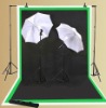 Photo Studio Lighting: background stand set Each set includes: Background Stand: 1 set Solid color muslin backdrop 3*6M: 1pc (colors: white, black, green) Light Stand: 2pcs Continuous Daylight with lamp socket: 2sets Soft Umbrella 40": 2pcs Carrying bag for the background stand. Carrying bag for the other items.