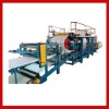 Pu Sandwich Panel Machine , sandwich panel line , eps sandwich panel machine Sandwich Panel Forming Machine consists of a roll formingmachine and a sandwich Panel laminating system. Throughthis line, corrugated sandwich panels can be producedirectly, without the shortcoming that traditionalcorrugated sandwich panels have to be laminated manuallyafter the forming of corrugated sheet. Moreover, both theroll forming machine and the laminating system can workindependently. The roll forming machine of the lineconsists of feeding system, roll forming system and cuttingsystem, while the laminating system is made up of suchequipment as decoliter, feeding, squeezing, heating,laminating, edge rolling edge turn-over, groove-making,edge pruning, pneumatic device, automatic cutting and PLC.The whole machine possesses advanced working crafts,merging mechanical and electrical equipment into an organicwhole. Annual production of this line eight hours a day isabout 500,000 square meters