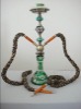 Hookah Height63cm from bottom of base to top of bowl (25'') ShaftIron andaluminum ornament Glassgreen glass with hand painted bands Hose(s) 1 in a coordinating color and style All hookahs include: glass base, shaft, grommets, tongs, tray, hose(s) and clay bowl (head). Note: We can do custom made Hookah Shisha, in any shape or size. We look forward to hearing from you..