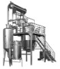 TECHNICAL PARAMETERS 1. Volume of extract can: 1m3, 2m3, 3m3, 6m3 2. Volume of concentrator: 0.5m3,1m3,1.5m3,2.5m3 3. Temperature for water distillation: 90 100 4. Temperature for alcohol distillation: 78 83 5. Distillation time: 4 5H/B 6. Vacuum degree: 0.05 0.08MPa 7. Used pressure: 0.08 0.2MPa How it works: The extraction of herbs into the tank, add herbs of 5 to 10 times the solvent such as water, ethanol, methanol, acetone, etc. (according to process requirements). Open the extraction tank and the jacket steam through the valve, heated to boiling to extract 20 to 30 minutes, with a filtration tube to 1 / 3 of pumping into the concentrator extracts. Close direct and jacket steam extraction tank, open the heater valve so that liquid material for enrichment. Concentration arising secondary steam rising through the evaporator tube into the extractor for extraction of heat source and solution to maintain the extraction tank boiling. Secondary steam continued to rise through the condenser condensing into hot condensate back to a solvent extraction tank for new drugs added to the surface, the new top-down high-speed solvent extraction tank through the layer to the bottom of herbs, medicinal herbs of soluble active ingredients dissolved in solvent extraction tank. The extract was pumping into the concentrator tube filtration, concentration has taken the steam generated by the second extraction solvent tank to the heat source and the new, creating a new large solvent extraction and therefore the density of solute medicines containing the solute and solvent to maintain a high density gradient, high-speed dissolution of the solute in medicine, until completely dissolved (extract colorless), then the extraction stops pumping into the concentrator, concentrated in the secondary steam transferred to cooler, condensation continued until the concentrate into a need to share (1.2 1.34) in the ointment, released to be used. Colorless liquid extraction tank may be placed in tanks approved for use under, residue from the slag door drain, if using organic solvent extraction, the first add the right amount of water, open through and jacket steam, solvent and , the slag drainFeatures: 1. Collection cans cream can improve the rate of more than 10 to 15% cream contains active ingredients is 1 times. As in the extraction process, the hot surface of the solvent continuously added to the drug, from top to bottom layer of high-speed through herbs, medicinal herbs in the dissolved solute, the solute content of herbs containing dissolved with the solvent to maintain a high quality gradient, medicine in solute dissolution speed until completely dissolved, the active ingredients from high concentration in a sealed device has completed a small loss, conversion rate, so high income cream, cream in high content of active ingredients. 2. As the speed of solute dissolution, extraction time, concentration and extraction simultaneously, condensed cream medicinal materials to only 7 to 8 hours of high capacity utilization. 3. Equipment single, small footprint, high capacity utilization, so less investment. 4. Extract only add a second solvent, in a closed loop inside the equipment used in the solvent residue can basically recycling out, it is more than solvent extraction tank, only 30%, consumption can be reduced by 50 70% , for using organic solvent extraction and purification of effective components of Chinese medicine paved the way for. 5. As the concentration of the secondary steam for extraction of heat, pumping into the concentrator and the concentrated extract of the same temperature, which could save more than 50% of the steam medicine, the operation is very simple, reducing the operator.