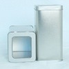 square tin cans size: 70x77x144Hmm material: 0.23mm tinplate print: basic silver Tin box with hinged lid and PVC window. According to foodgrade standard so safe for containing food.such as tea,coffee,biscuit,etc. Simple design but has good quality and broad applications.