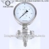 ALL STAINLESS STEEL DIAPHRAGM PRESSURE GAUGE1.Type:YTPF2.Accuracy:Normal Grade 2.5 or 1.53.Diameter of outside:60mm=2.5'',100mm=4'',150mm=6''.Otherwise,we can dospecial size you need.4.Measure range:From -0.1 to 100Mpa5.Installation:Bottom connection, Back connection or Back connection with border.6.Thread:BSP,NPT,BS,UNand other special specification7.Temperature:-10 70°C8.Shockproof9.Corrosion resistance10.Certification:ISO9001:200811.Dial plate:Single and dual scale (psi, kpa, mpa, bar, kg/cm2) availablenamematerialoutsideSUS304 stainless steelBourdon TubeSUS316L stainless steelInsideSUS316 stainless steelThreadSUS316 stainless steelpointerAluminumdiaphragmSUS316 stainless steelAttention:In the measurement instruments, shall not exceed the load measurement limit 3/4