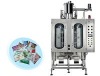 This machine was specially designed and manufactured for solving the problem of contamination during pasteurized milk packaging. The feeding system of the machine can be linked with CIP system to make up a automatic circulating cleaning system, to guarantee the clean of the feeding pipes. The packaging materials are sterilized by the UV lights inside of the machine, to make sure that, both of the packaging materials and the liquid products are operated under a clean environment. This machine can reduce the contamination to the liquid materials during packaging processes, and make the shelf life of the milk products much longer with good quality. The machine can automatically finish the processes of pouch forming, filling, dosing, sealing and cutting, date printing, etc. The machine has the advancements of simple structured, fast packaging speed, stable quality, long operating life, etc. and it is now the most suitable packaging machine for pasteurized milk. The machine is suitable for pillow type pouch packaging.Specifications:Capacity: 60-100 pouches/min (twin-filler) Packaging volume: 200-1000ml Accuracy: ±1.5% Width of the film:320mm Length of the pouch:95165mm Air pressure:0.65Mpa Air consumption:1.6m3/min (0.8Mpa) Power supply:AV380V±10%, 50Hz Power: 3.85Kw Weiht: 720kg Dimensions(L×W×H):1700×1100×2950(mm)