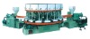 1)The machine is used specially for production of traveling shoes, casual shoes, plimsolls, high upper shoes and various sport shoes with foamed and unfoamed soles. 2)Raw materials suitable for the machine are foaming and unfoaming thermoplastic materials, such as PVC, TPR, etc. 3)The machine is controlled by PLC and equipped with full hydraulic working system which uses proportional pressure control and full automatic cycle. 4)Two step injection in single barrel, preplastifying by hydraulic system, computer measuring and empty mould selecting functions are used in the machine. 5)Hydraulic movement by single cylinder combined with toggle type locking mechanism are adopted in the last pressing and mould closing system. 6)The round table are indexed by hydraulic system and braked by electro-magnetic device. ( Indexing by frequency variable motor and reversal function are optional) 7)Mould closing and last pressing sequence can be selected freely. 8)Chilling system for direct cooling of moulds is available at customer’s request. This system can reduce the setting time and is favorable to production of quality sole and higher productivity. 9)Moulds can be easily fixed and adjusted in the machine. DescriptionunitSpec.& parameterSZE-16C(ONE-COLOR)2SZE-16C(TWO-COLOR)No. of stationspcs1616Screw diametermm7575Screw rotating speedr/min0-1600-160Max. injection vol.cm³580580Plastifying capacityg/s4040Way of mould closingparallelparallelLast strokemm8080Mould heightmm210-260210-260Mould frame dimensionsmmL380xW180xH80L380xW180xH80Motor powerkw20.535.5Machine dimensionmmL6135xW3160xH1955L8050xW5150xH1955Net weightkg1180014500