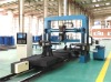 I. Brief Introduction of the MachineThe structure of the machine is rollers' conveying and gantry moving in a small range. The gantry structure and base are plate style box-beam structure.It's mainly used for drilling of three-dimension multi-hole of H-beam. Three axes simultaneous machining may be realized. The accurate CNC system and fine mechanical performances may meet the accuracy requirements for the dimensions of one group of holes accurately.II. Main Technical ParametersThe max. machining capability of the drilling machine: Drilling diameter: 13 -40mm Gantry moving range: 2000mm The range for the height of H-steel: 2 00 -800mm The range for the width of H-steel: 200 -1200mm The range for the max. length of H-steel: 5000 -15000mm Motor power of spindle: 3×4KW Taper of drill rod Morse 4 The max. up-and-down speed of cross drill: 500mm /min Hydraulic feeding: Pressure in hydraulic system: 10Mpa Cooling mode: Atomized cooling Total input power: 26 KW Weight of the complete machine: 8000kgIII. Characteristics of the MachineThe machine uses the computer and accurate and reliable driving mechanism and replaced the primitive method of re-aligning and clamping for second time positioning after drilling in single direction. The positioning accuracy of machining of holes on mutual vertical plane is improved and the working efficiency is greatly increased at the same time.IV. Structure and CompositionThe machine is adopted with steel box-beam structure. The gantry is stable in structure and high in strength. The spindle box is controlled by computer and the spindle motor is adopted with four governing modes.The workpiece is clamped hydraulically.General lay-out will be according to the length of H-beam to be machined by users, and concretely design the lay-out of the relative clamping and aligning device and conveying rollers and set the relative dimensions.V. Detailed Technical Data and ParametersSer. No.ItemsPermissible ToleranceMeasures1Perpendicularity of axis X and axis Y ±0.08/ 300mmAngle gauge with high accuracy and dial gauge2Perpendicularity of axis X and axis Z ±0.08/ 300mmAngle gauge with high accuracy and dial gauge3Perpendicularity of the spindle of cross drill and the spindle of vertical rill ±0.08/ 300mmAngle gauge with high accuracy and dial gauge4The flatness of the spindle of cross drill and the spindle of vertical drill ± 0.15mm / 300mmAngle gauge with highaccuracy and dial gauge5Positioning accuracy of spindle ± 0.10mm / 300mmDial gauge, gauge block and micrometer6Repeat positioning accuracy of spindle 0.2mm / 300mmDial gauge, gauge block and micrometer7The max. moving speed of gantry 1500mm /minStopwatch and meter scale8The max. moving speed of vertical drill 500mm /minStopwatch and meter scale9The max. moving speed of cross drill 500mm /minStopwatch and meter scale10Rotary speed of spindle 180-560r/minSpeedometer11Spindle feeding stroke 400mmMeter scale