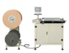 The WB-520 (book binding machine) utilizes closing bars to ensure quality controllable wire closes. The wire is fed into automatically between the binding bars by a pitch wheel and pitch belt, counted, cutted and arrive at the ready position to accept the book. Each loop of wire is firmly held and ready to accept the book for wire insertion. The feeding table clamps book firmly and brings it into binding position in place, then the lower closing bar rises rapidly and the loops insert into the book and closed automatically, and then the feeding table takes back the bound book. Features: 1) No manual book-hanging required, the insertion of the book is full automatically 2) The main control panel uses touch-screen technology for fast setup and easy operation 3) The screen clearly display all current machine data,menu for adjustment and operation 4) Foot pedal operation 5) Skip binding up to four step 6) Various loops diameters can be processed by changing the individually sized closing bars 7) Fully automatically spool dewinding with winding of separation paper strip 8) No special training required 9) Optional removable hanger feed unit Data: 1) Bound edge: 75mm - 520mm 2) Pitch: 3:1, 2:1 3) Speed: up to 25 books per minute 4) Power: 220V / 1PH / 50Hz 5) Air pressure (bar): 6 - 8 6) Required space: 2.10 x 1.50m 7) Weight: 260kg