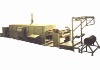 Product name: pasty-dot interlining coating machinery with the electric oven Model no.:DJ02-175 Brand:Dahe Origin:china 1. Usage:This interlining coating machinery is suitable for coating mid and high grade size point laminating fabric of nonwoven, knitted, warp-knitted-weft-insertion fabrics, and base cloth. 2. Main Technological Requirements:2.1 interlining Coating machinery width:1200mm 2.2 Speed: 5-30m/min 2.3 Power units: 2.3.1 size point driving motor: 1.5 kW Size furnishing pump motor: 0.75 kW Size mixing pump motor: 0.75 kW Air compressor: 3 kW Heating power of dryer: one burner 62.8J Padding flat driving motor: 2.2 kW Circulation fan: 5.5 kW Humidity exhaust fan: 100W 2.3.2 Total power: 3 phase 380V 50Hz Control power: 220V Installed capacity:20 kW 3. Structure Characteristics3.1 This interlining coating machinery consists of debaucher, size point device, dryer, cooler, rebutter and electric control board. 3.2 Debaucher 3.2.1 Roll-off creel is suitable for piece or package fabrics to meet demands of different cloth feeding. 3.2.2 Tension of cloth feeding can be adjusted by hand wheel. 3.2.3 Cloth guider adjusts cloth feeding in the center to ensure proper position for sizing. 3.3 Size point device 3.3.1 STOCK Standard model. Stainless steel pneumatic blade, pneumatic weighing, squeeze,squeeze carrier, rotary screen, driving head. 3.3.2 Two groups of stainless steel outer squeezes, support roller, compression roller and opening roller. 3.3.3 Speed regulating size agitator 3.3.4 Improved size furnishing pump, speed regulating, manual and level control 3.3.5 3 sets of nickel screen, normally 17 mesh, 25 mesh and CP 66 3.4 Dryer 3.4.1 Teflon conveyor for delivery and stray preventing device provide good curing effect, the matrix runs in tensionless state, thus it features heat shrinkage reduction and stable width and soft handle. 3.5 Cooling and rebatcher device Cooling part consists of three roller with water cooling. 3.6 Rebatcher part Friction rebatching adopting Traditional method of rebatching roller linking with padding flat enables convenient operation. 3.7 Electric controller 3.7.1 This interlining coating machinery is driven by imported frequency conversion speed regulating motor, it features stable drive and large scope for regulating.