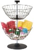 Budget-Friendly Counter Dump Bin Spinner A great countertop rack for promotional, seasonal, and closeout items. Features 2 tapered wire baskets Baskets are 18” diameter at the top, and are 8” deep Baskets are black powder-coat Black plastic base with silver pole Sign holder included
